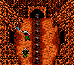 ここではファミコン版ゲバラです。SNKの戦争物といえば 『怒』が有名ですがはっきり言ってこっちがお薦め。 爆撃を受けながらの上陸に始まって、畑での激闘、トロッコに乗って捕虜を救出 (何とトロッコ面は画面全体が回転します) 最後は宮殿と全く予想のつかない展開です。 他に凄いと言えば、捕虜を救出すればボーナスが入るのですが 誤射する事もできてしまいます(ただし点が引かれます) 後半面は敵の攻撃が激しい上、捕虜を盾にする奴も現れて 救出が困難になっています。 サスケvsコマンダーが遊べるのもポイントが高いと言えます