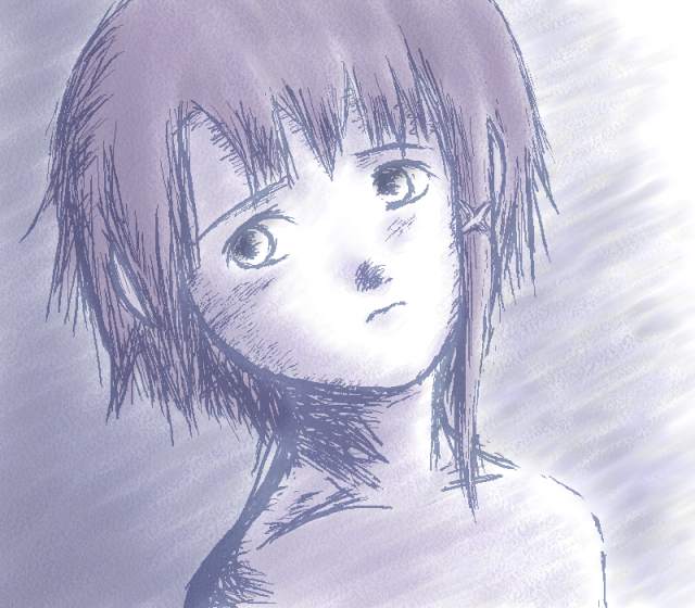 「シリアルエクスペリメンツ れいん」 友達から借りてプレステのレインをプレイしました。おもしろかったです。 公式ガイドを読んだら、リアルワールドに生きる存在を「玲音」、ネットワーク内の 存在を「lain」、幻覚に現れる存在を「レイン」と表記していました。 このCGは、さしずめ「れいん」といったところでしょうか。 戻る