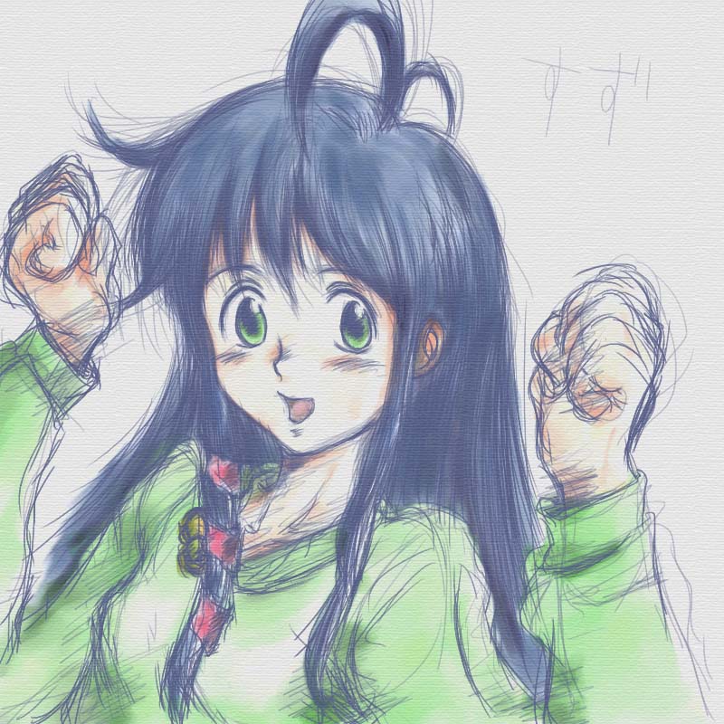 クイズ「鈴つけてるからドラミ」 というのはウソです。誰でしょう? クイズクイズ。「この娘の出てくるゲームのタイトルは?」 ヒント この娘が歌うとタイトルになる。 YU−NOですか?とかボケないでね。 正解を答えてくださった中から1名の方のCGリクエストにお応えします。 答え書くときにCGへのリクエストを併記してください。 解答を締め切らせていただきました。 現在のCGクイズの問題の方もよろしく御願いします。 前回の答えは「Kanon」でした。「Kanoso」じゃないよ。 正答率は50%。 戻る
