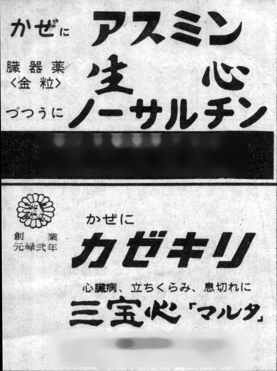 とある新聞の広告。上と下は別々の会社ですが、センスを競い合ってるような(笑)。 『かぜにアスミン』の「かぜに」で使われているフォントって何なんでしょう? 知っている方居たら教えてください〜。