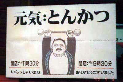 きたをさんにおごってもらったトンカツ屋さん。ごちそうさまでした。 元気なんですかね、なんか持ち上げてるこの人は。