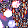 昔の事になりますが、フリー版を開発中の時のことです。 『人海戦術007』ステージを遊んで…じゃなくてチェックしていると ふと気づきました。「…なんか敵弾が半透明に見える…」 しかしこのステージ、いろんな意味で弾けて(汗)いたので 深くチェックしていませんでした。しかしスクリーンショットを取ってみたら |
