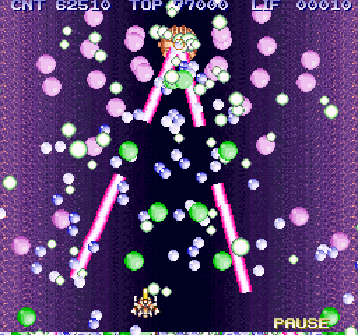 劇弾はTOWNS上で動作するシューター育成ゲームです。 『頭脳圧搾工場 in 仙台』の77000ヒット、 『宇宙男爵』の10000ヒットを記念して作りました。 エンディングまで死力を尽くして弾を回避して下さい。 CPUが386のTOWNSでも基本60コマで快適動作。 メモリも2Mで十分です(OSにもよりますが)。またFD1枚に収まる為、 コンパクトです。つまり大抵のTOWNSで遊べます。 さらに葉山由貴氏による内蔵音源の曲、ランキング・リプレイ機能搭載や TOWNSの機能を生かした特殊効果なども特徴です。 |