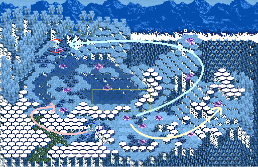 ダルンダラが殺される頃には魔力的に五分くらいです。黄色のエリアが戦場になると思うので、入り口の狭さを利用してひたすらに守りましょう。おすすめはマームやダ・カーム。キュリア・ベルも配置して、壁越しに魔法を使っていきましょう。根気よく守っていくとそのうちギュネ・フォスが相手の背後まで到達するので、そうしたら押していきましょう。(^-^