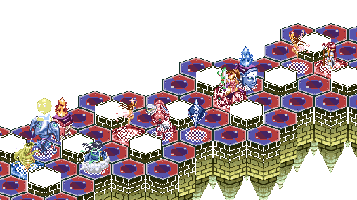 今日はFALCOMチャットにて祥さんと対戦。マップは時を刻む神殿。珍しく私は赤マスターでプレイ。スピリットははじめにギュネ・フォス、ダルンダラと召喚。こちらはそれに対しダ・カームとダルンダラで応戦。クレールではスピリットに素早さと移動力で負けているため、当然のごとく中央の魔晶石はとられてしまいました。中央を占拠してるダルンダラをダ・カームで攻撃しはじめたところに、スピリットがバ・メードを召喚し、ダ・カームを固める。とりあえず、こちらはペリット+アモルタミスで対応。